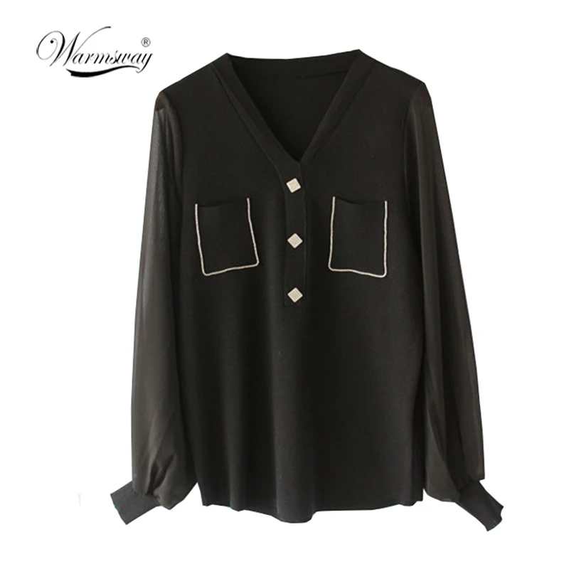 Белая Повседневная шифоновая трикотажная женская блузка из вискозы в стиле пэчворк, рубашка, весна 2020, элегантные женские корейские Топы с длинным рукавом и карманами, C-001