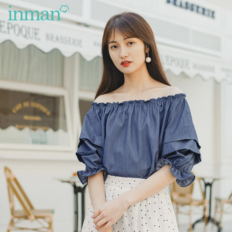 INMAN, лето 2020, Новое поступление, милые элегантные топы, короткий рукав, воротник-стойка, рукав-фонарик, женская блузка