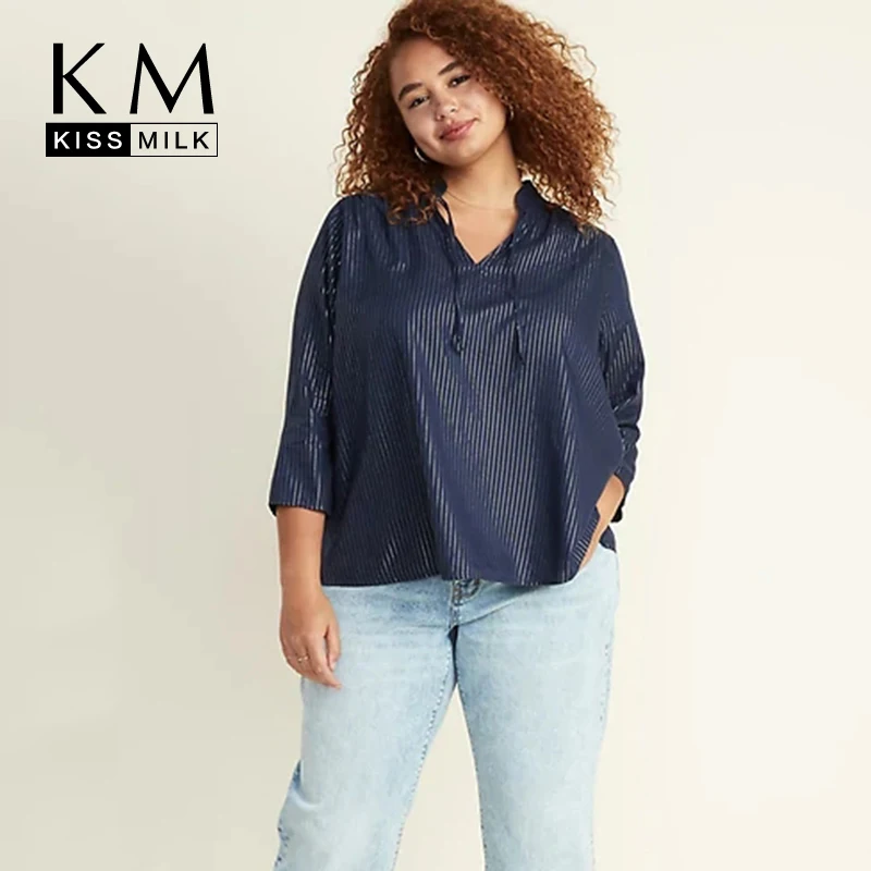 KISSMILK 2020 Новая мода весна шнурок размера плюс свободная тонкая простая Kailuan рубашка со стоячим воротником