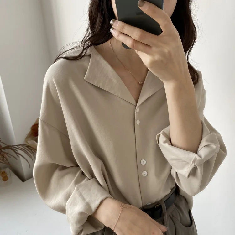 Большие размеры, шифоновые однотонные белые и черные женские свободные рубашки с отложным воротником, новинка 2020, весна-осень, повседневные...