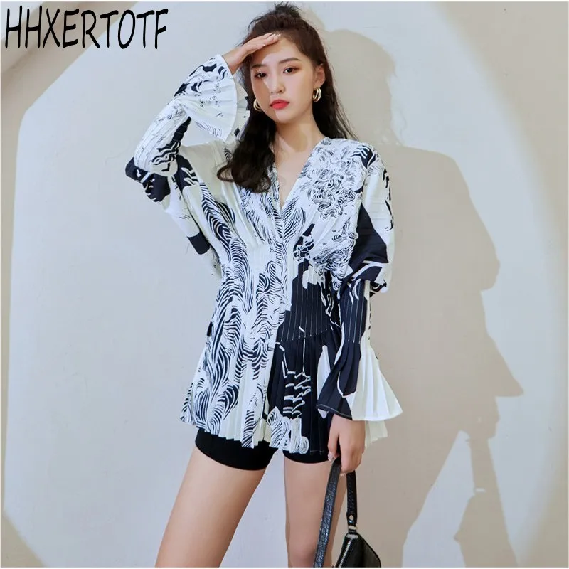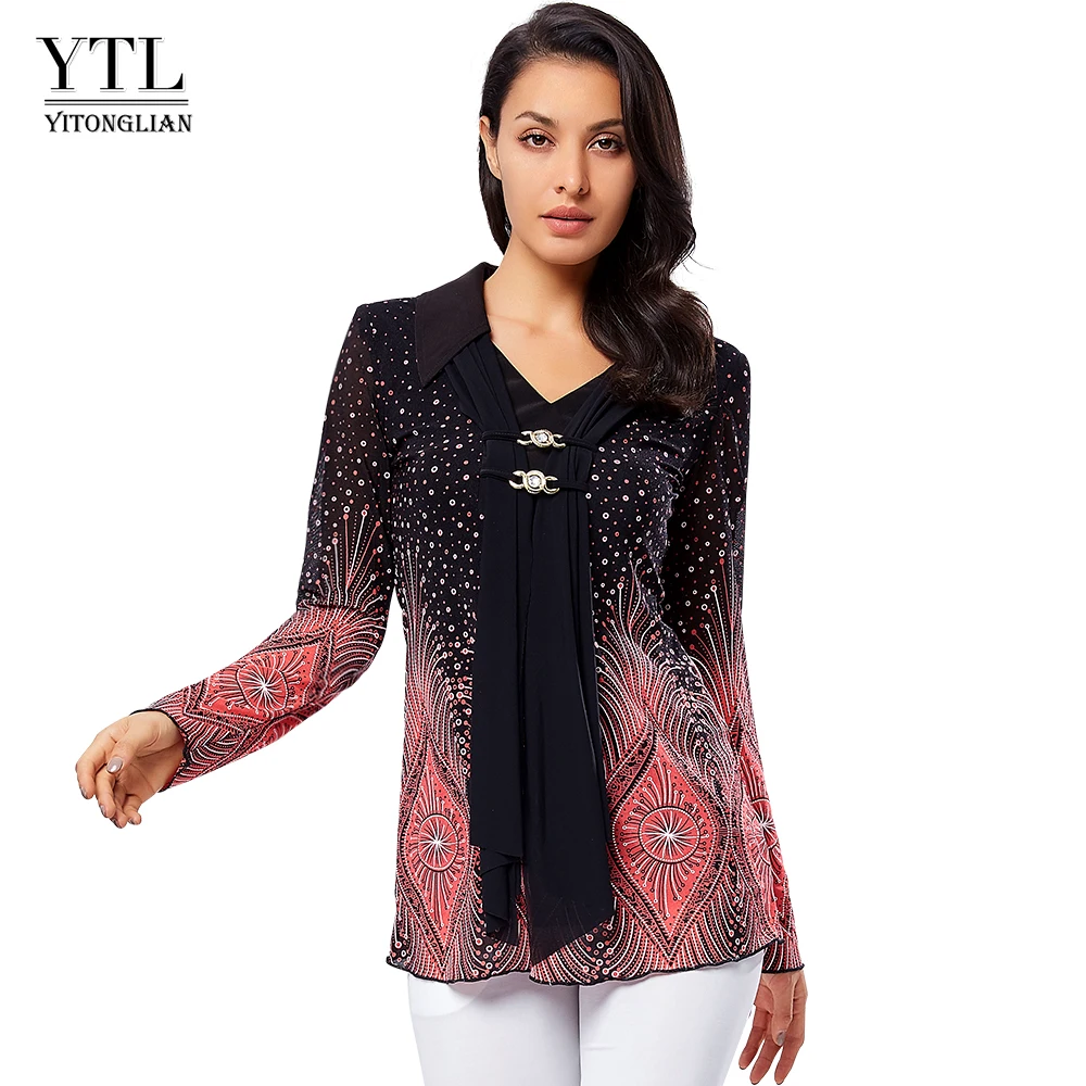 Рубашка YTL большого размера с отложным воротником, винтажная женская рубашка с рукавами-фонариками и принтом, большой размер s, зимняя брошь со стразами, H033