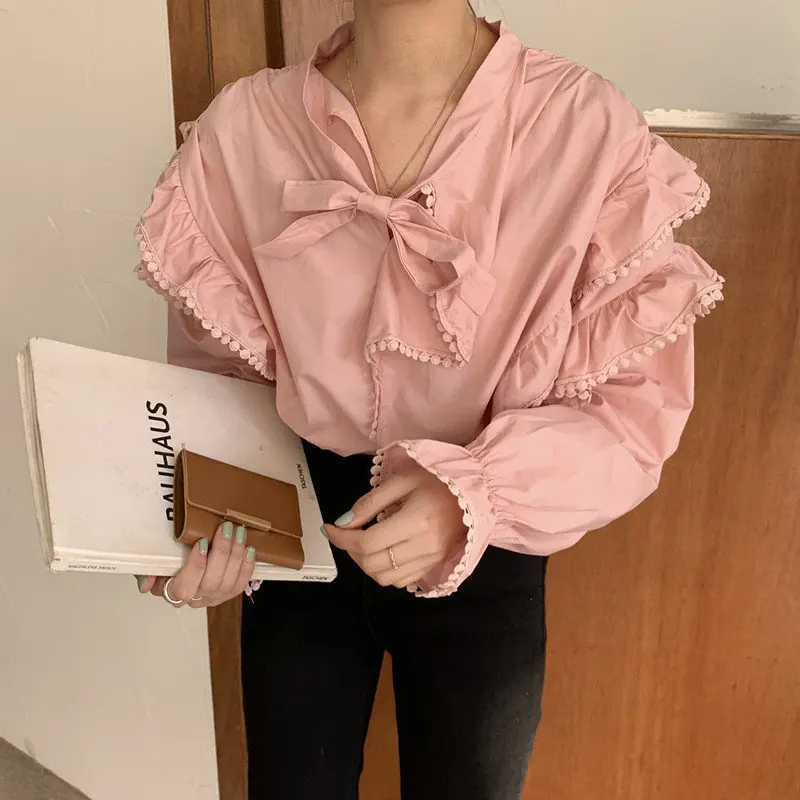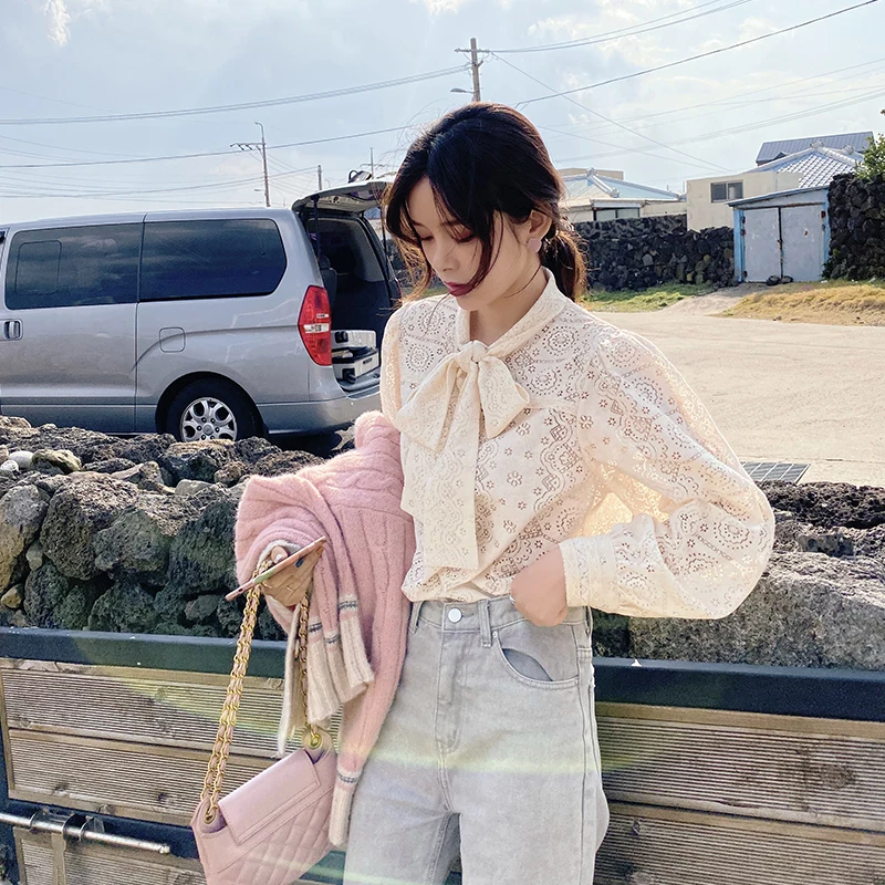 MISHOW Женская кружевная блузка с бантом на весну и лето, Повседневная Свободная Милая Кружевная рубашка, топы MX19D4105