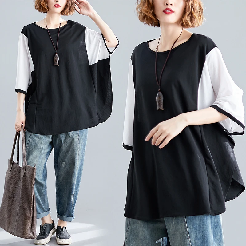 Большие размеры летние женские модные элегантные цветные накидки летучая мышь женские плюс большие нерегулярные свободные сплит-блузка, рубашка blusas