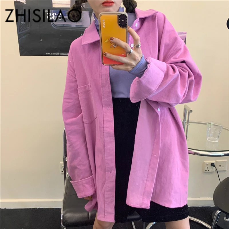 Блуза для женщин, Вельветовая, элегантная, размера плюс, длинный рукав, свободная рубашка, макси, розовая блузка, весна 2020, женские топы, сорочка для женщин