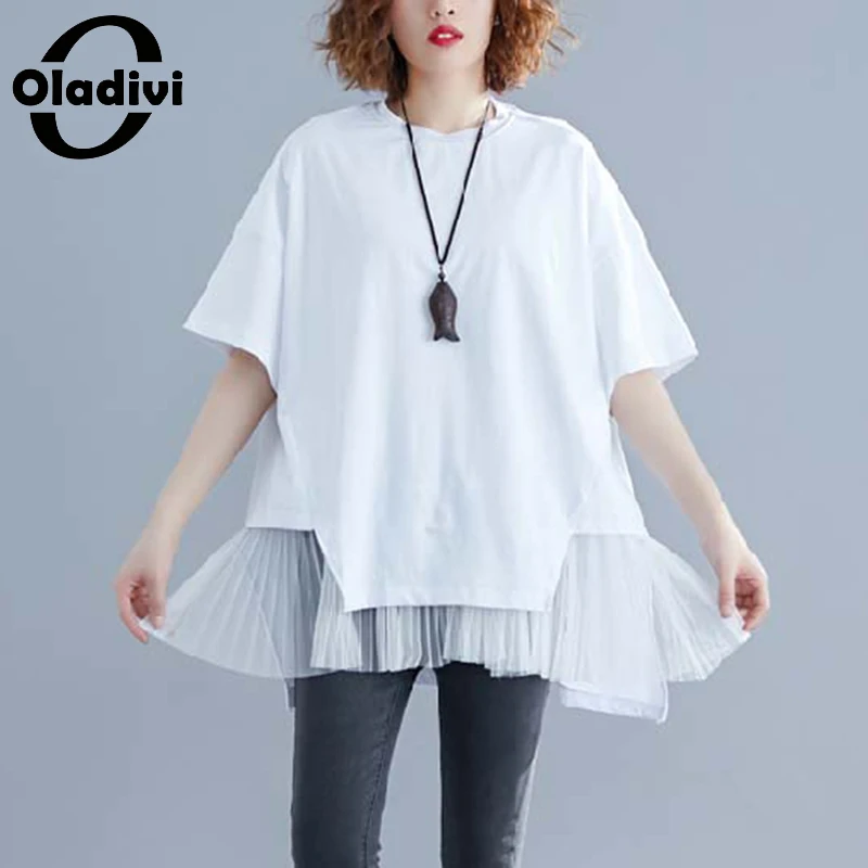 Oladivi брендовая Повседневная Женская одежда размера d размера плюс футболка 2020 летние новые свободные рубашки женские короткие туники топы тройники черного цвета