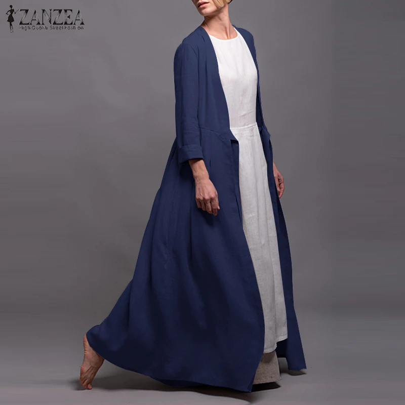ZANZEA, осень 2019, винтажная длинная рубашка с боковыми карманами, женские повседневные топы с длинным рукавом, блузки, свободные, открытые спер...