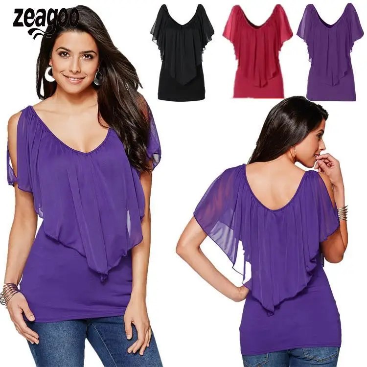 Модные женские топы, блузки, Сексуальная Блузка с v-образным вырезом и оборками, женская летняя рубашка с коротким рукавом-бабочкой, повседн...