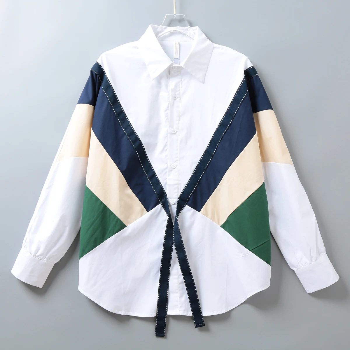 Весенняя и Осенняя Новая модная блузка с длинным рукавом из хлопка, подходящая по цвету Повседневная Свободная блузка размера плюс, женские топы