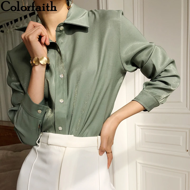 Colorfaith новые женские блузки рубашки 2019 Осень Зима Мода корейский стиль элегантные офисные Женские однотонные белые женские топы BL9307