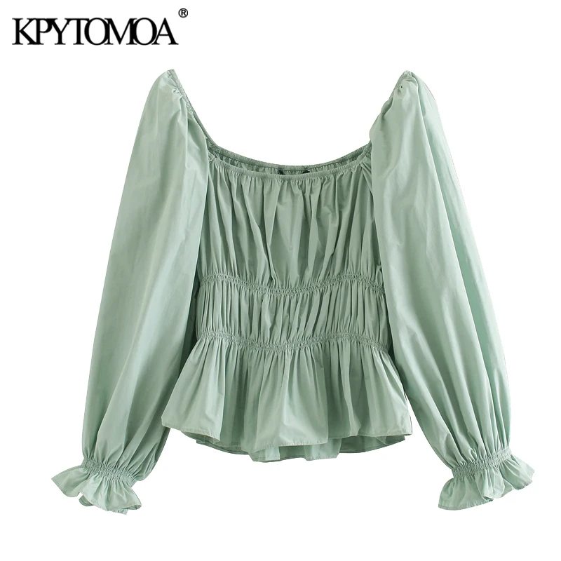 Женские блузки с оборками KPYTOMOA, винтажные блузки с квадратным воротником и рукавом три четверти, модель 2020