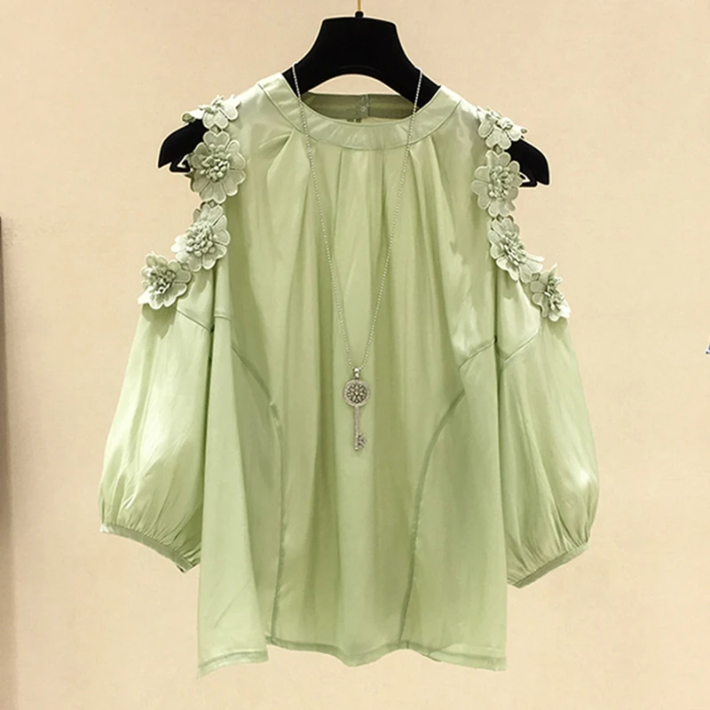 Женская Повседневная футболка с цветочным рисунком, шифоновая рубашка, свободный стиль, с открытыми плечами, женская блузка, топы размера плюс, Blusas Femininas
