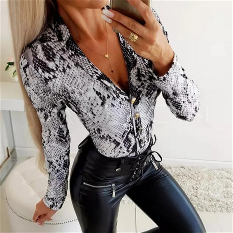 Женские топы с длинным рукавом и v-образным вырезом, винтажная рубашка с животным принтом, приталенная блуза на пуговицах, Облегающая рубашка, топы, повседневная одежда