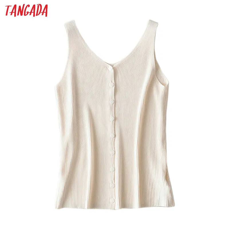 Женский топ без рукавов Tangada, повседневный однотонный топ с пуговицами на лето, AI22