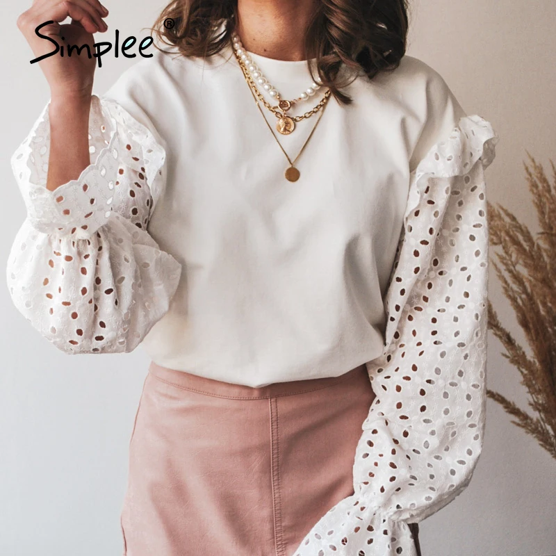 Hirigin женские блузки Длинные рукава Белый Кружево полые водолазка блузка Топ Лето Блузки для малышек Кепки Элегантная блузка для женщин