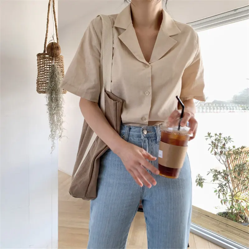 HziriP 2019 Повседневная свежая винтажная Женская модная универсальная летняя короткая милая однотонная однобортная рубашка Топы