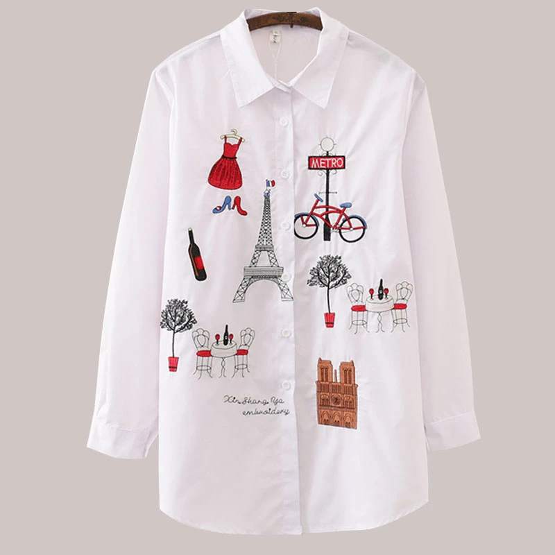 Белая женская блузка, плюс размер, длинный рукав, Осень-зима, Женские топы и блузки, 2019, Женская Повседневная хлопковая рубашка, блузка с вышивкой