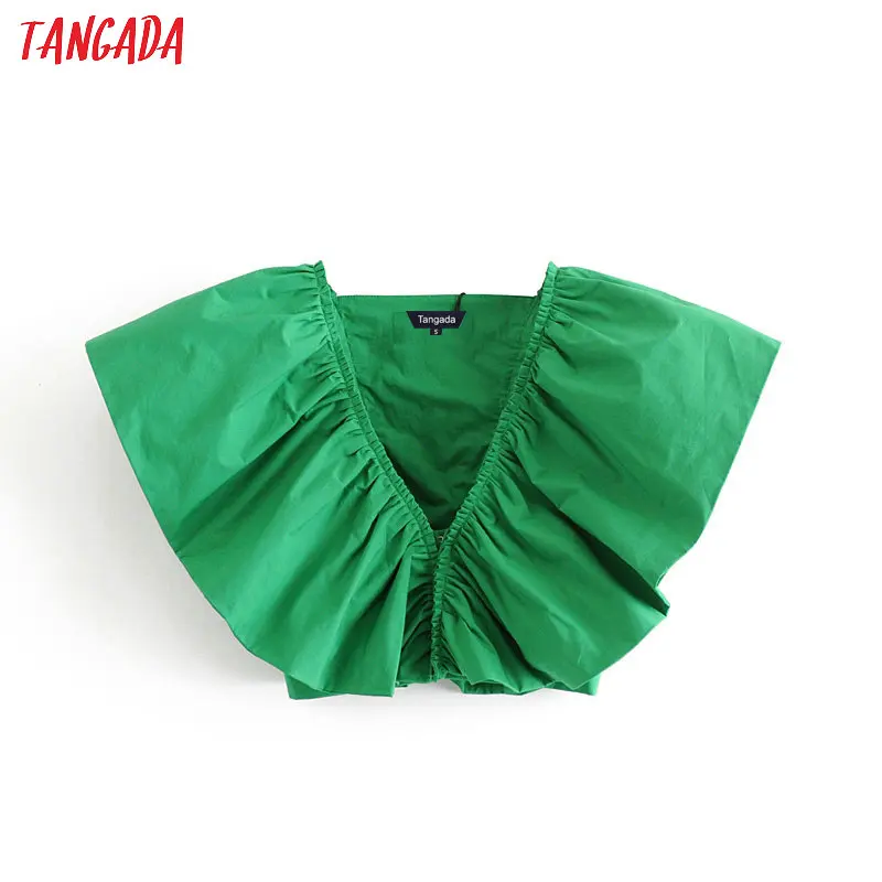 Женская блузка в стиле ретро Tangada, зеленая блузка с большими оборками, без рукавов, шикарная Женская Сексуальная рубашка с v-образным вырезом, blusas femininas, 3H258
