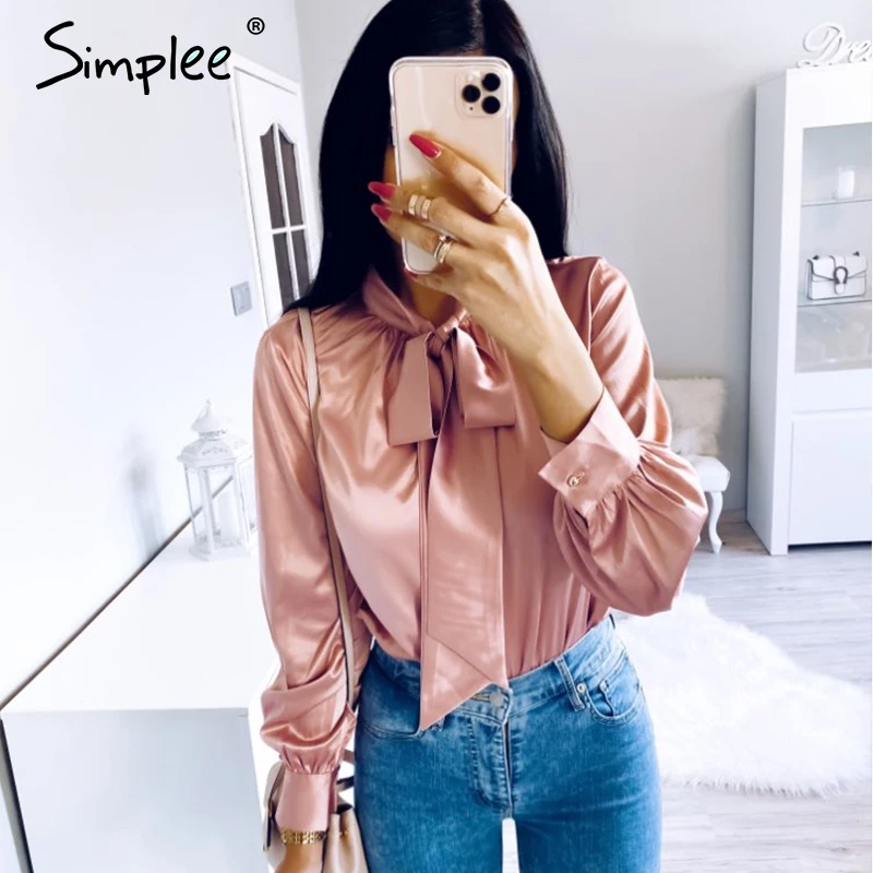 Simplee Повседневная розовая Женская блузка с длинным рукавом, рубашка на лето и весну, блузка с галстуком, рубашка, элегантная рабочая одежда, ...