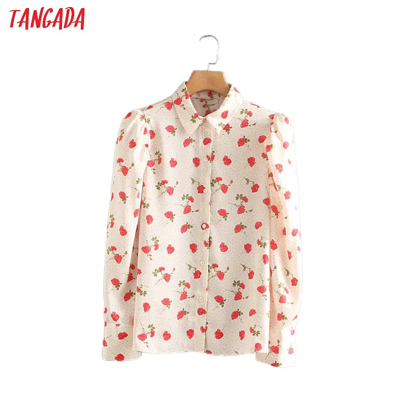 Женская блузка в стиле ретро Tangada, с принтом розы, с пышными длинными рукавами, в французском стиле, шикарная Женская Повседневная рубашка, blusas femininas, 2W116