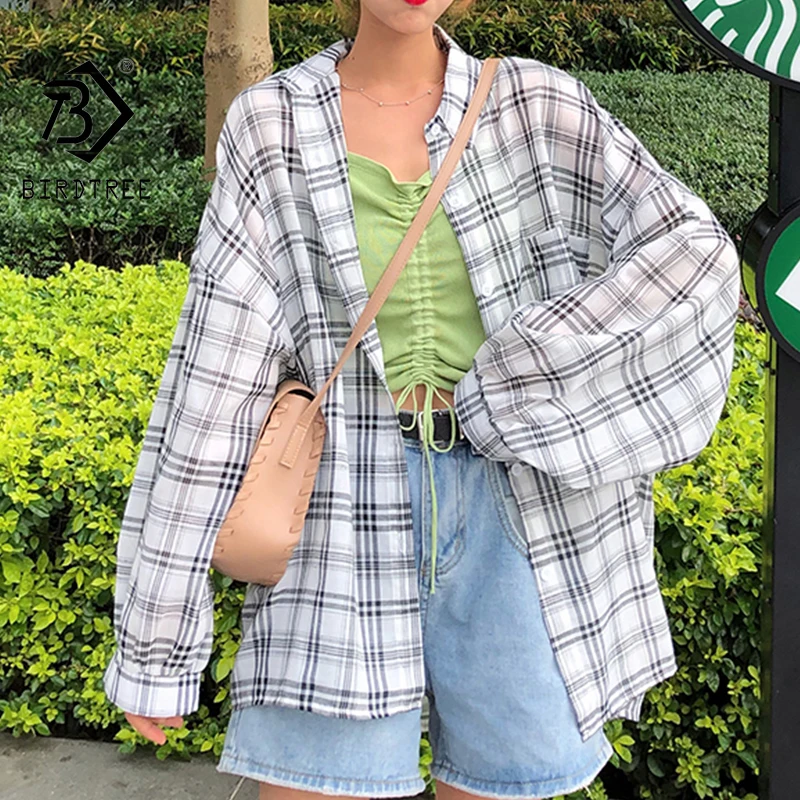 Новое поступление, летняя женская рубашка в клетку Харадзюку с рукавом летучая мышь, отложной воротник, блузка на пуговицах, женская блуза ...