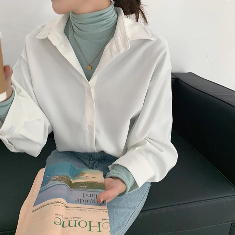 Однотонная винтажная Элегантная блузка для женщин, рубашки с длинным рукавом, Mujer, весна 2020, свободная блузка, большие размеры, белый, черный, Blusa Feminina