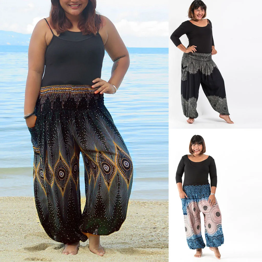 Повседневные свободные женские шаровары, панталоны mujer pantalones de mujer, уличная одежда 2019, хиппи, мешковатые Boho шаровары Z4
