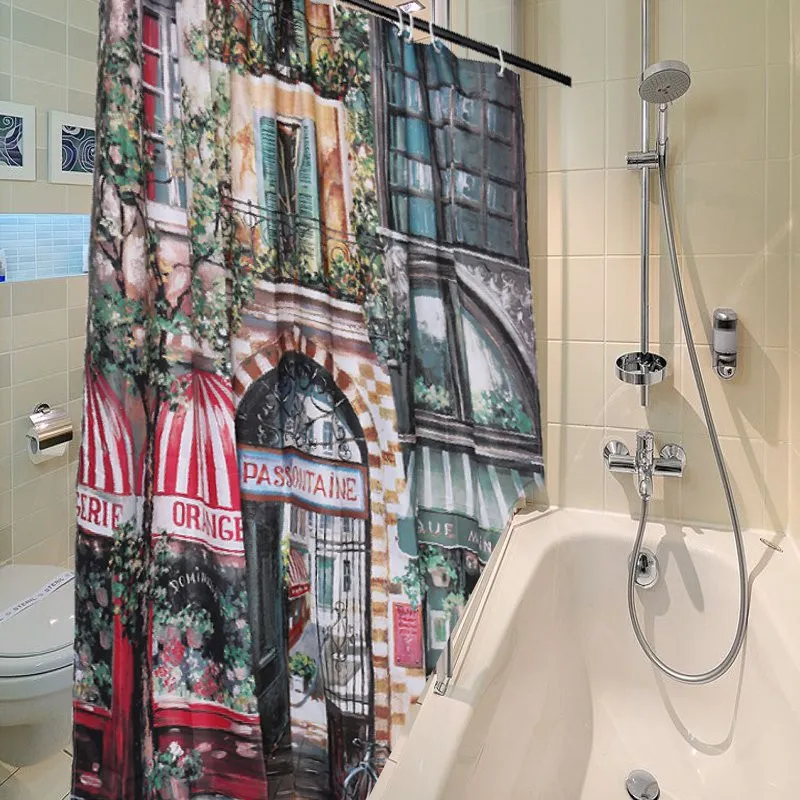 180x180 см Водонепроницаемый моющийся винтажный полиэстер Европейский французский уличный 12 крючков занавески для душа ванная комната