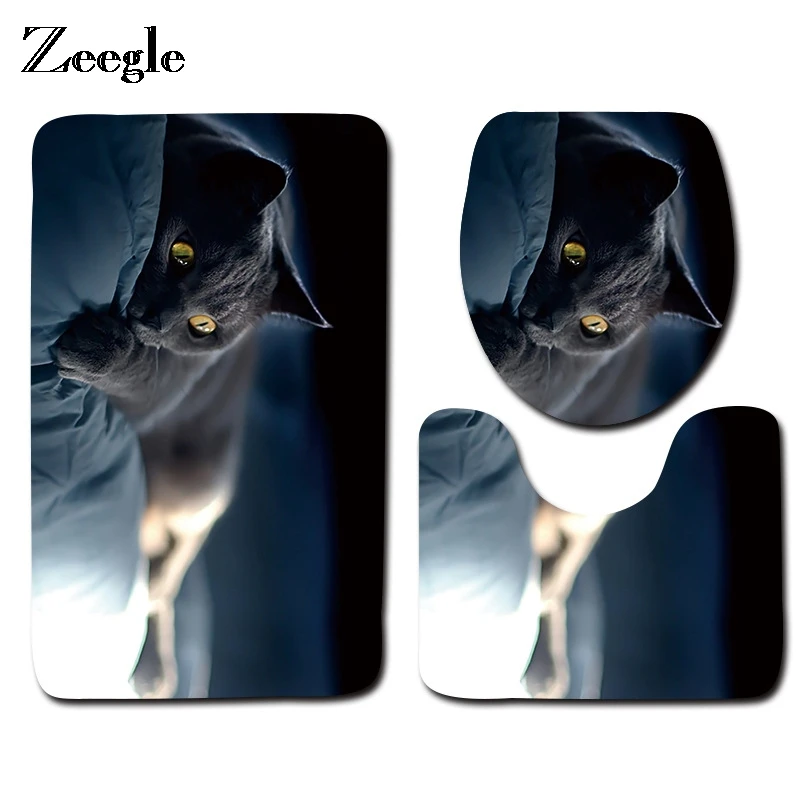 Zeegle Cat печатных коврики для ванной Ванная комната напольный коврик для туалета ковры Нескользящие сиденья комплект Декор водонепроница