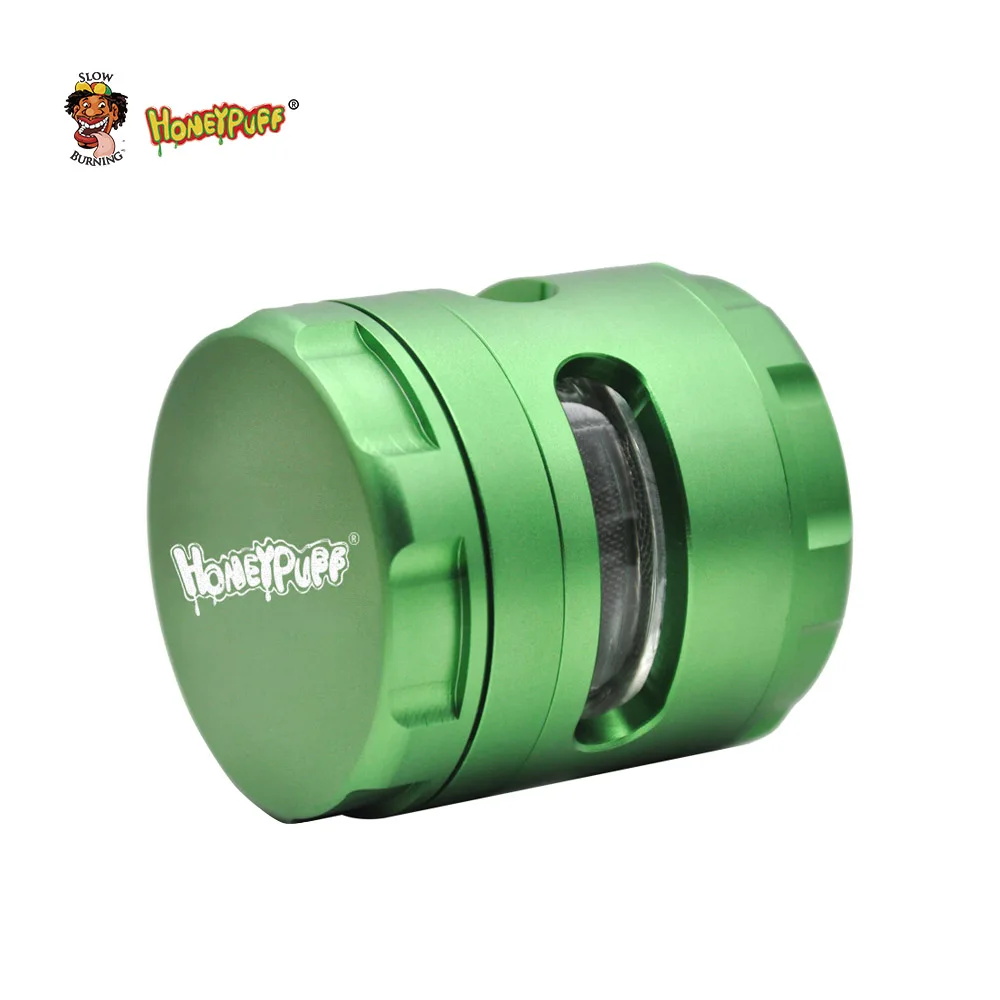 HONEYPUFF дизайн окна травяной шлифовальный станок 60 мм/2,40 "5 слоев дробилка для трав специй Кривошип Разделенный экран ручной мельник