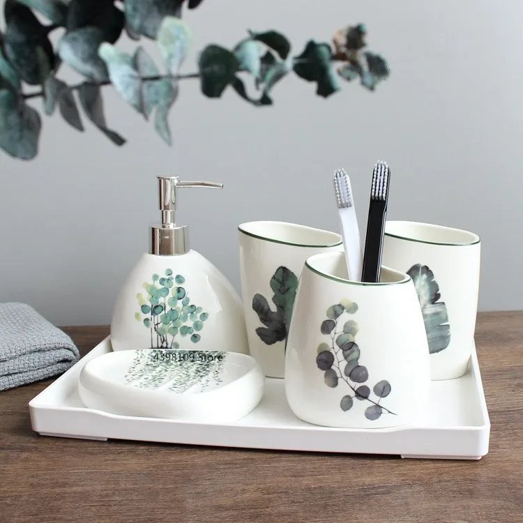 5 компл. нордическое зеленое растение керамика ванная комната серии шесть наборы зубных щеток Держатель мыло коробка диспенсер ванная комн...