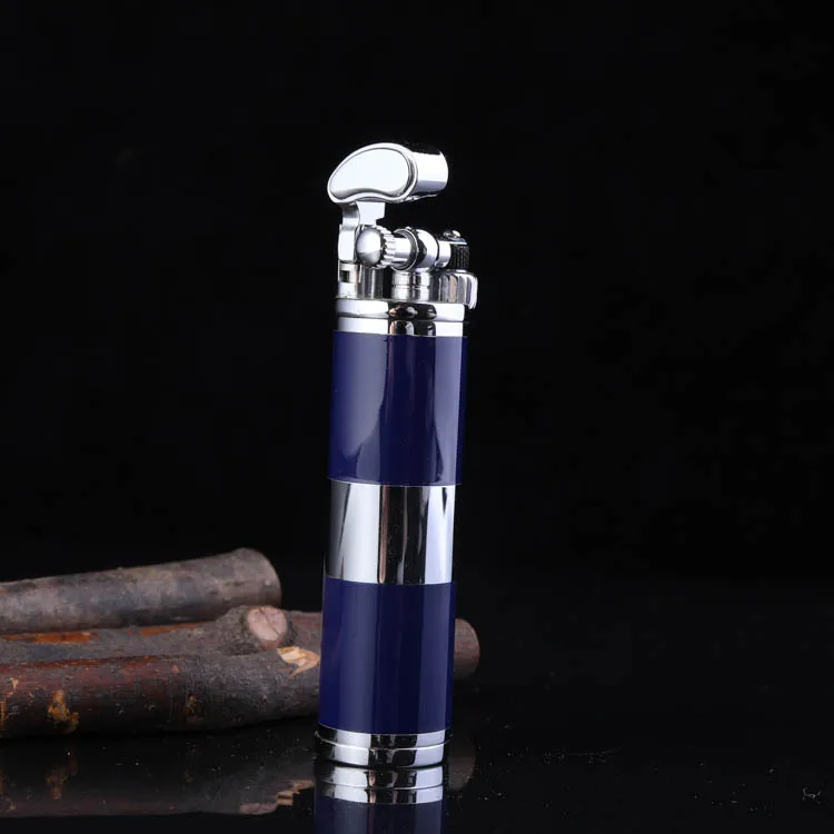Нержавеющая сталь надувной газовый шлифовальный круг металлическая зажигалка струйный бутан цилиндрический тип Зажигалка для курения табачная Зажигалка для сигар