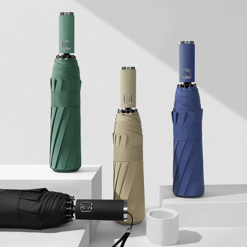 Новый автоматический зонт 10K, три складных бизнес-зонта с цветной ручкой, зонты для дождя для мужчин и женщин, ветрозащитный мужской зонт