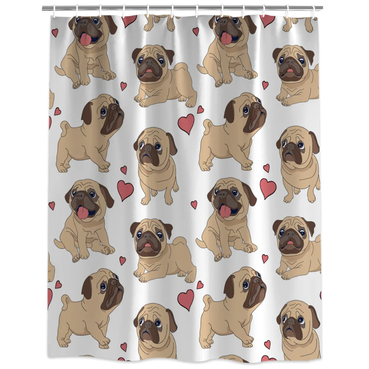 Мопс милый дизайн сердца удлиненная ткань для ванной занавески для душа 3D Древний мир плесени стойкая ванная комната декоративный набор с к...