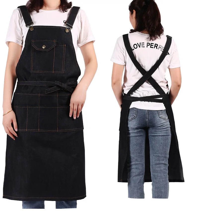 Модные черные джинсовый фартук для шеф повара Кухня фартук для женщин мужчин с инструмент карманы принадлежности шашлыков Регулируемый М д...