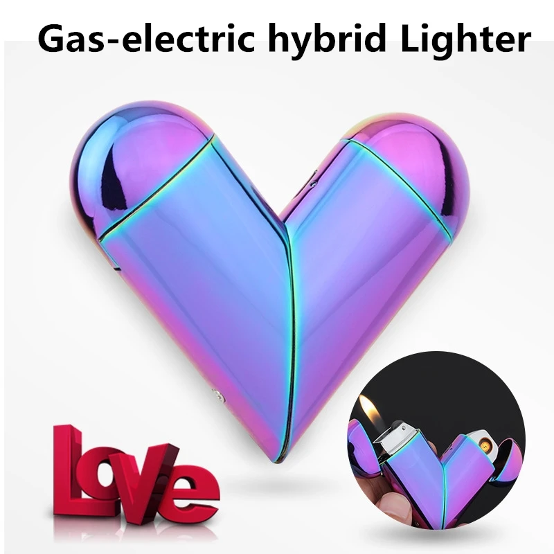 Сердце Форма газа-электрический складной легче USB Электронная зарядки дуги плазменный Зажигалка пламени Бутан газовая зажигалка гаджеты д...