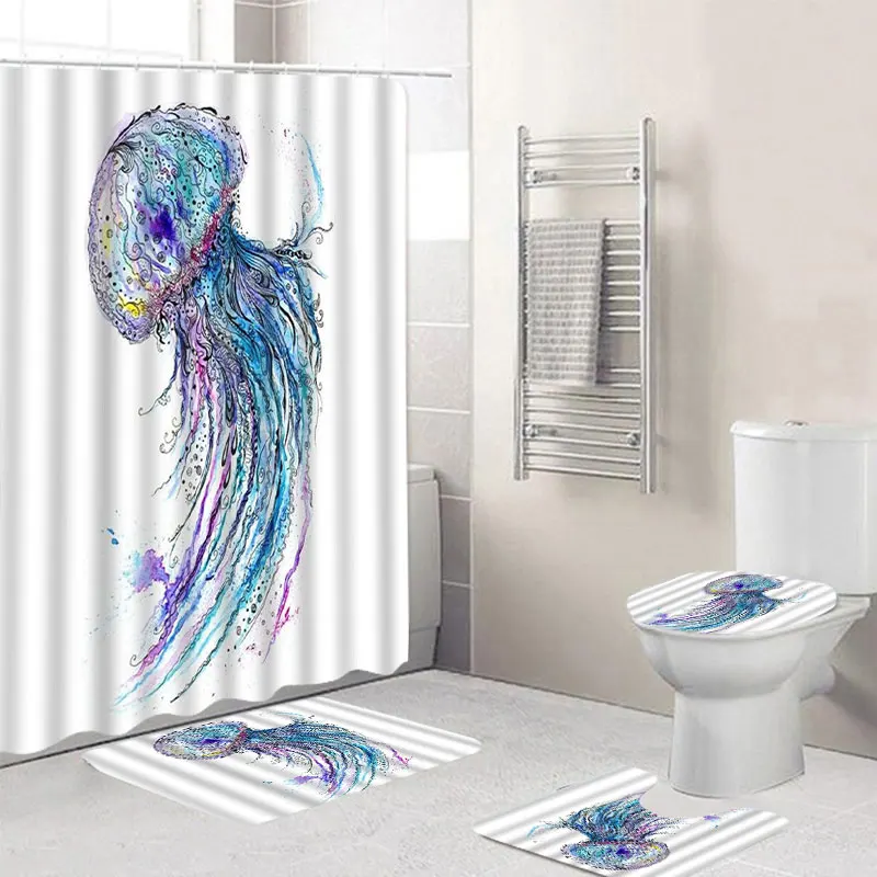 3D занавески для душа с принтом Медузы 3 шт. Набор ковриков для ванной Водонепроницаемый полиэстер ткань занавеска для ванной с 12 крючками