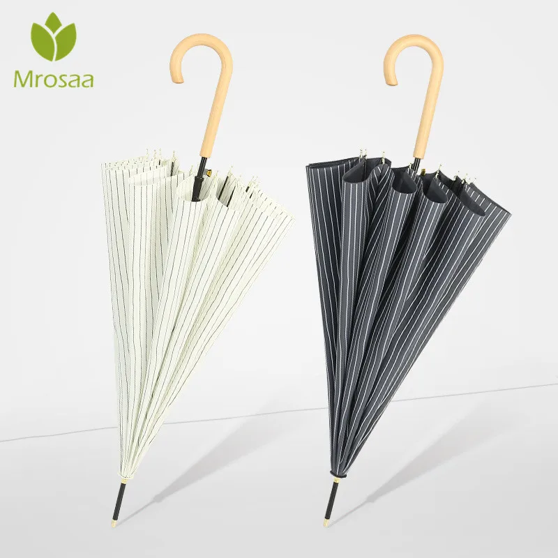 Деревянный Ветрозащитный складной автоматический открытый ретро простой полосатый зонтик дождевой женский японский зонтик с длинной ручк...
