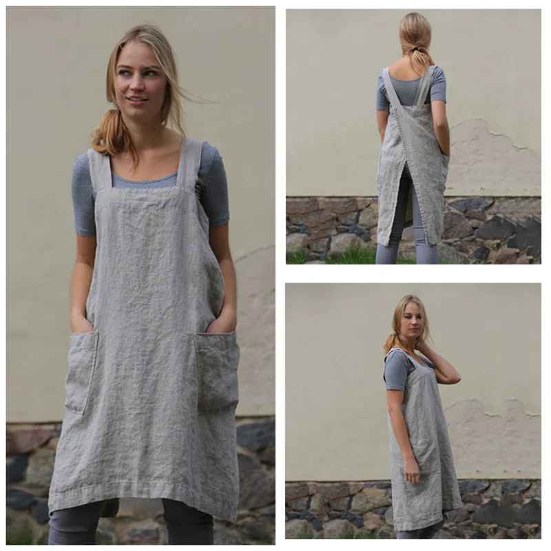 Для женщин кухонный фартук приготовления краткое северные ветра плиссированная юбка Льняной Фартук Кофе магазинах и цветочные магазины ра...