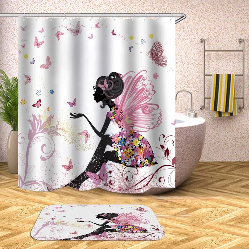 Цветочная фея Душ Шторы мультфильм девушка Водонепроницаемый Ванна Шторы s для Ванная комната ванной купальный крышка большой шириной 12 шт....