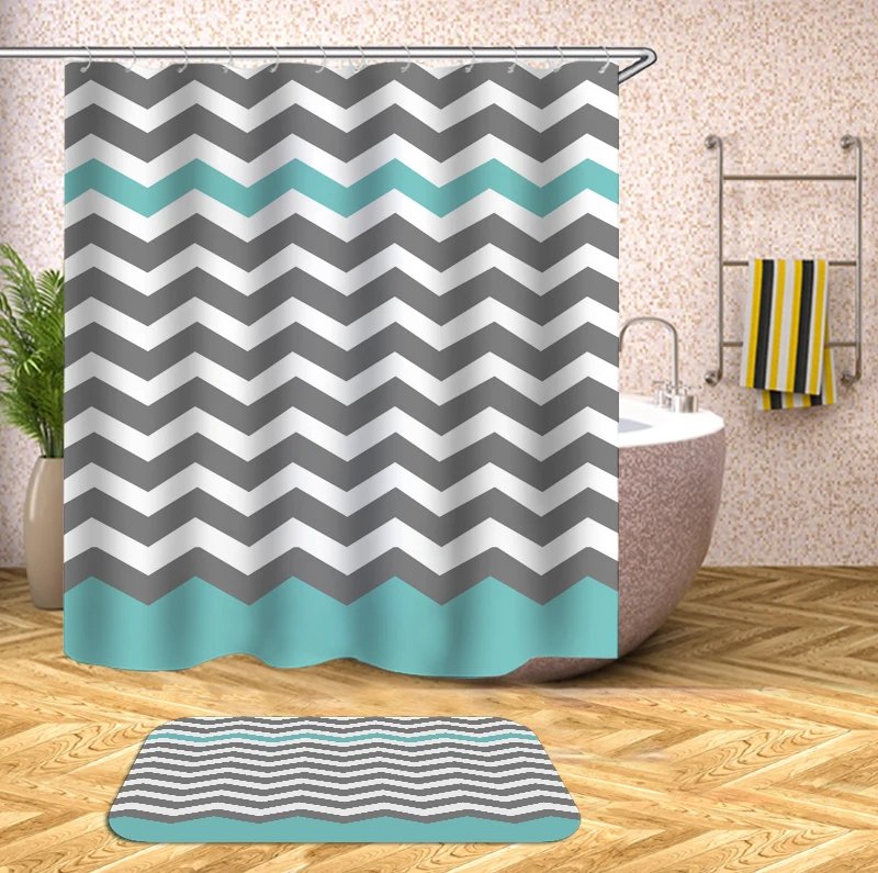 Волнистые полосы Ванная комната Душ Шторы с геометрическим принтом Водонепроницаемый Ванна Шторы s для ванной купальный крышка большой шир...