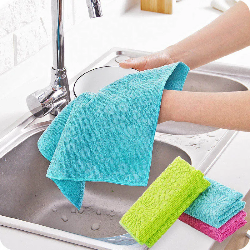 Water Absorbent Hand Towel Microfiber Dish Cleaning Rag Drying Cloth 30*30CM Scouring Pad Home Cleaning Tools