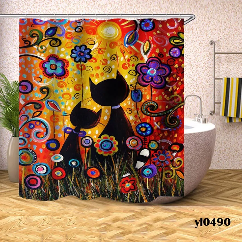 Занавески для душа с изображением кота из мультфильма, водонепроницаемые занавески для ванной с животными, Большие широкие занавески для ванной, домашние занавески Rideau De Bain
