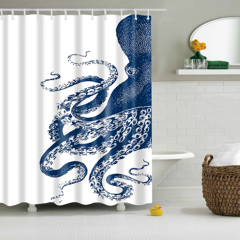 2019 Новый осьминог шаблон занавеска для душа ванная занавеска Экологичная водостойкая полиэфирная ткань занавеска для душа с 12 крючками