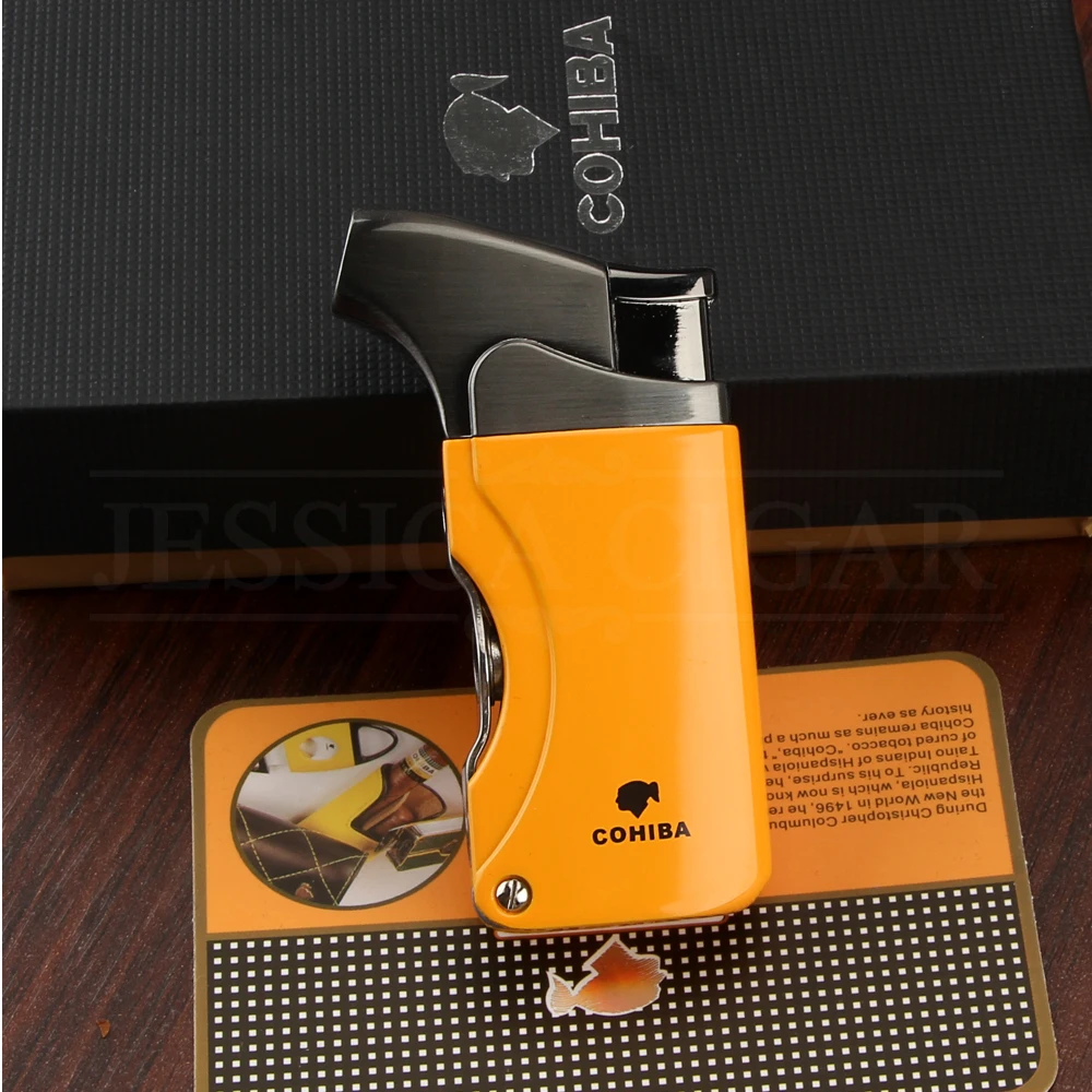 COHIBA зажигалки металлические ветрозащитные бутановые газовые многоразовые факел пламени сигарета прикуриватель встроенный сигарный удар