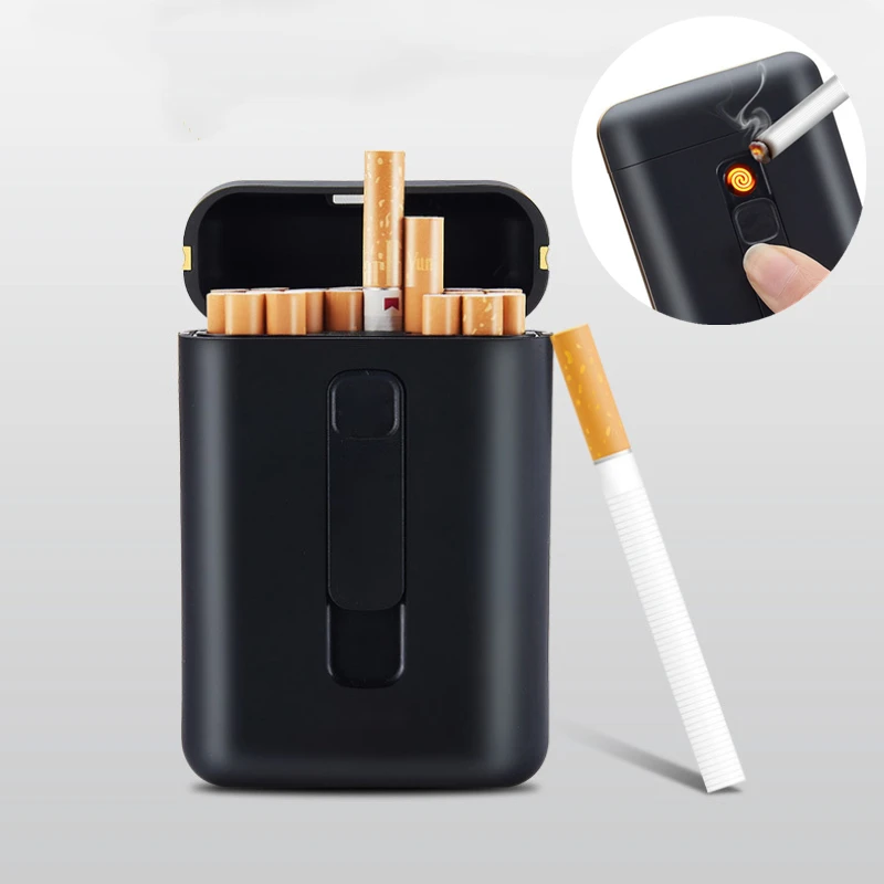 2-в-1 футляр для сигарет Зажигалка для курения USB перезаряжаемая Электронная Зажигалка Ветрозащитная Зажигалка для дропшиппинга (прямой пос...