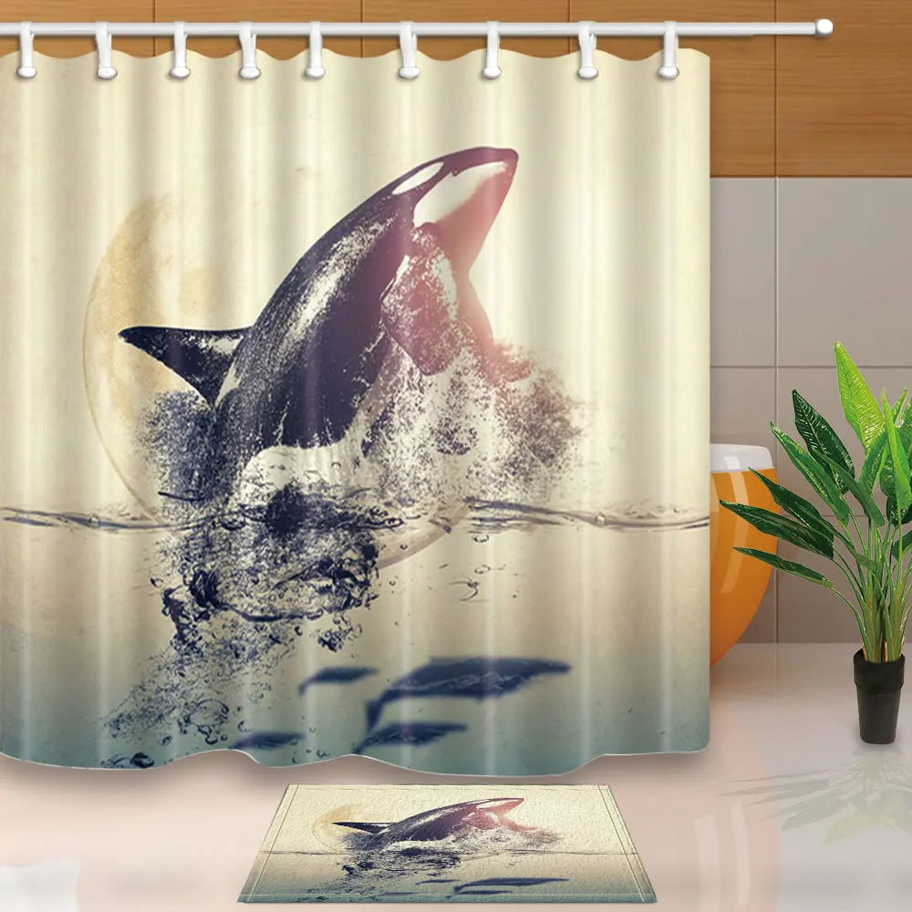 Занавески для душа Дельфин в море, занавески для ванной, полиэфирная ткань, водонепроницаемый, защита от плесени, экран для ванной, с 12 пласт...