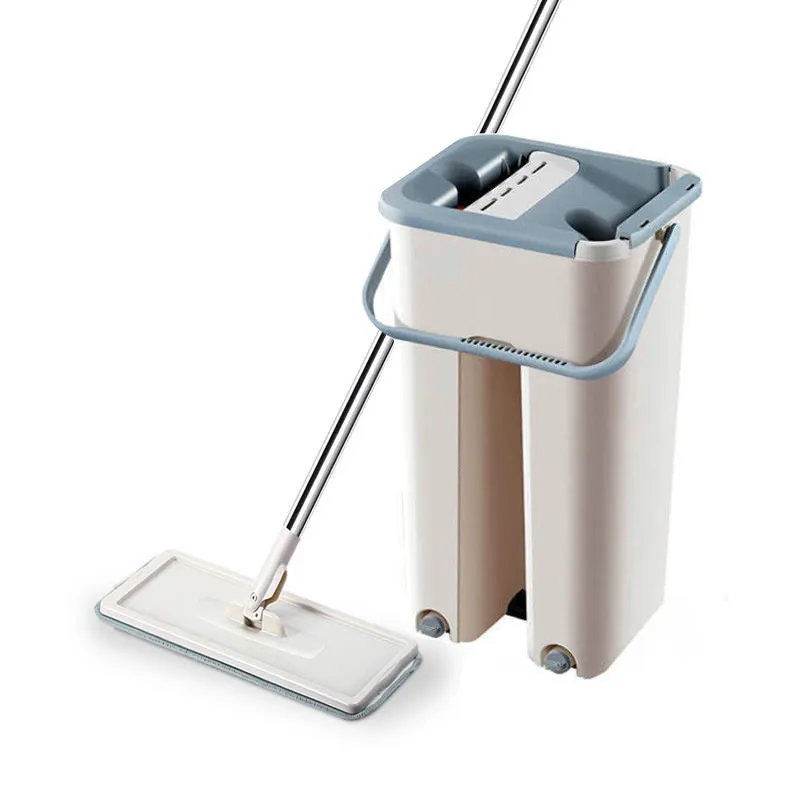 Drop Shipping Magic Microfiber Cleaning Mops Free Hand Mop with Bucket Flat Squeeze Magic Automatic Home Kitchen Floor Cleaner