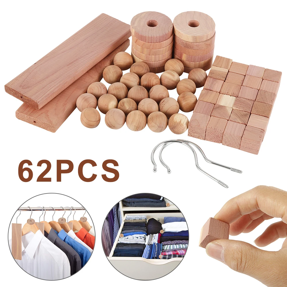 62pcs Wardrobe Pest Control Wooden Mothballs Cedar Wood Block Ring Insect Repellent Moth Ball Household Moth Mildew Proofing