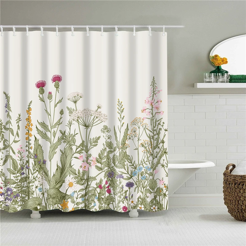 Серия растений, занавеска для душа, для ванной комнаты, водонепроницаемая, полиэстер, занавеска для душа, цветочный принт, занавеска s для ва...