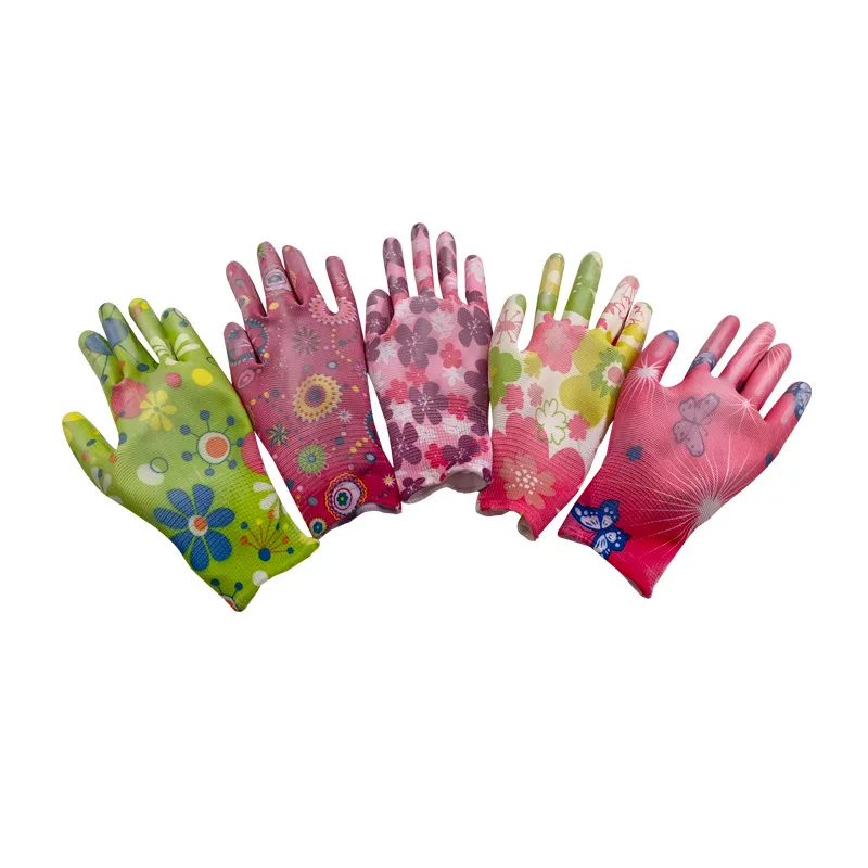 Женские нескользящие перчатки для уборки дома дышащие садовые перчатки женские нейлоновые перчатки с цветочным принтом из искусственной к...